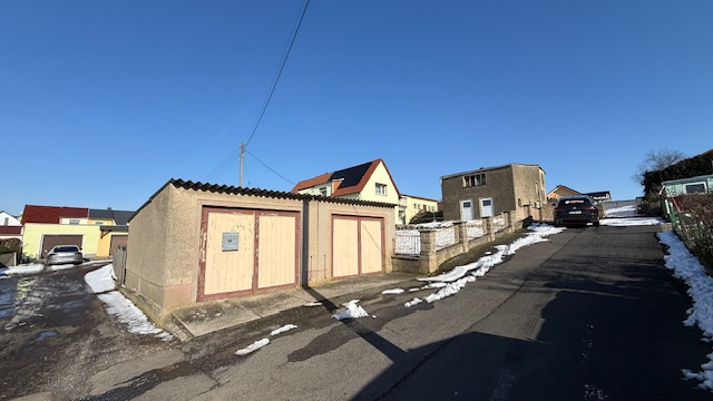 Zwei Garagen in massiver Bauweise wurden im Grundstück errichtet. Die Zufahrt erfolgt von der Straße aus.